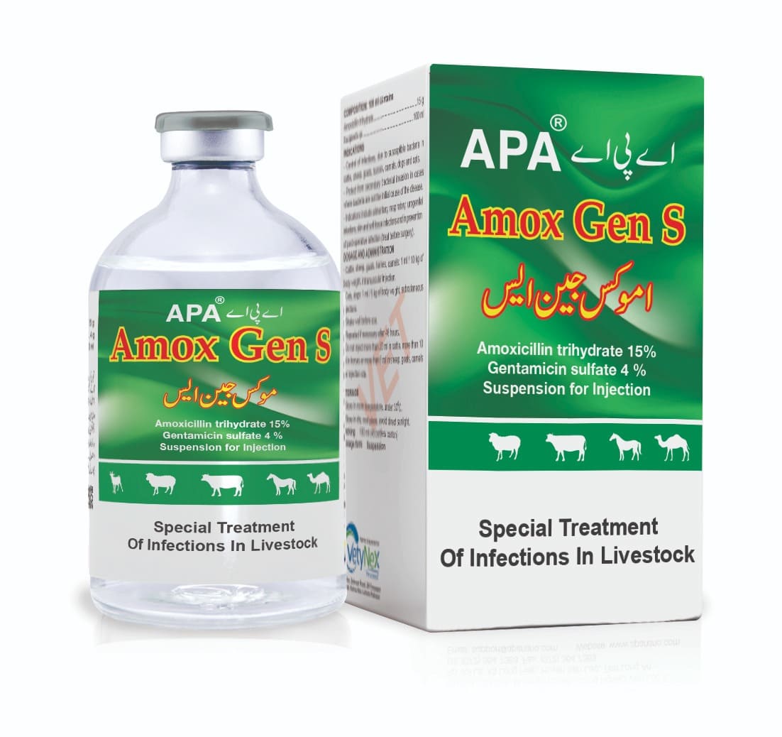 For the Treatment of gastrointestinal, respiratory and intramammary infections caused by bacteria sensitive to Amoxicillin-Gentamicin, such as pneumonia, colibacillosis, pasteurellosis, diarrhea, bacterial enteritis, mastitis, Metritis and cutaneous abscesses for cattle, sheep, goats, horses and camels.